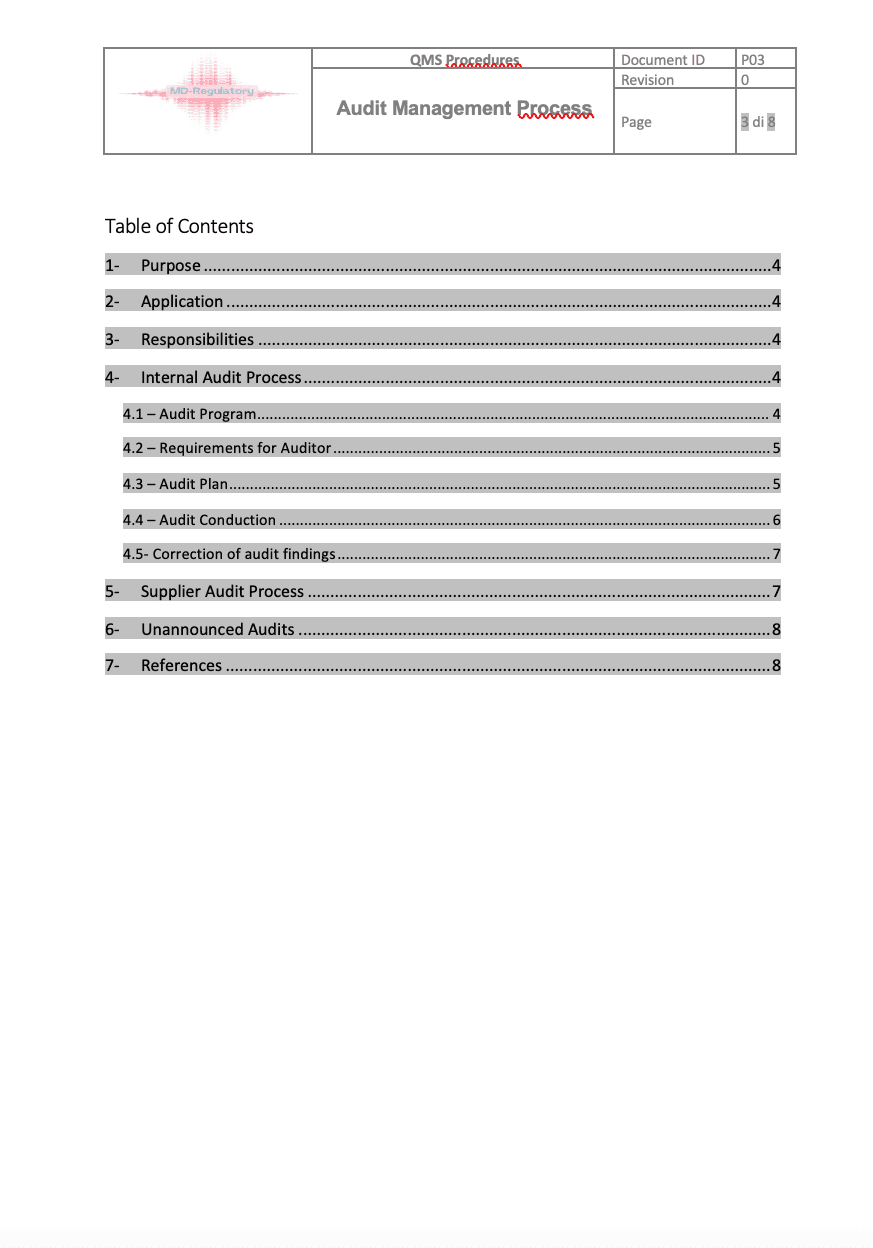 Q: Does this procedure cover both internal and supplier audits? A: The procedure is primarily designed for internal audits. It can be adapted for supplier audits, but a dedicated supplier audit procedure is recommended for full MDSAP and ISO 13485 compliance.
